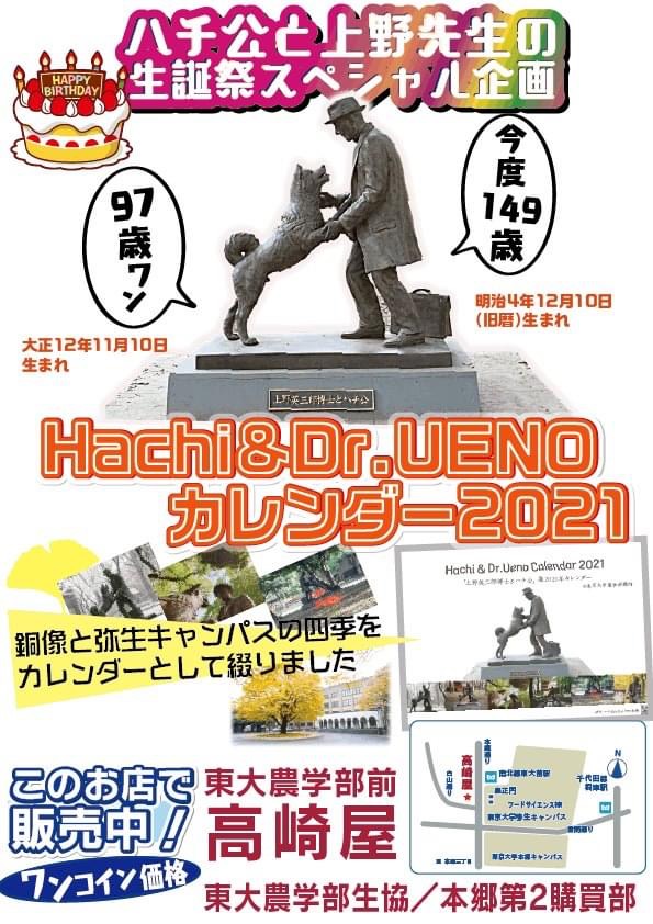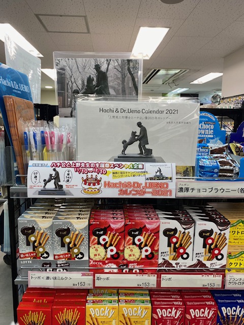 現在も農学資料館は休館のままです。資料館におけるハチ公グッズ販売も中止のままですが、「2021年のカレンダー」を作成し、農学部内生協及び高崎屋酒店にて販売しております。