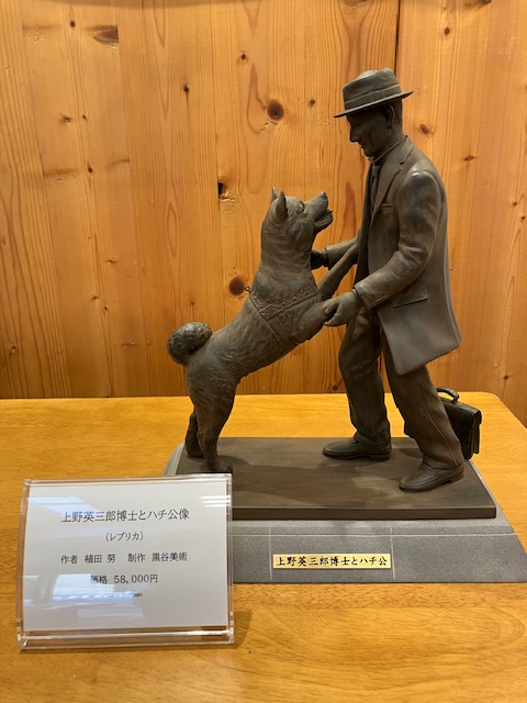 上野博士とハチ公像のレプリカが好評販売中です。限定10体が完売し、すでに二期目、三期目の制作が決定し予約される方もいらっしゃるほど。一期目の販売価格でご提供することが難しく相応の値上げが予定されています。探しているのは9月8日に資料館でこのレプリカを即買いされたお客さまです。最近になってレプリカ像の箱がすっぽり入る特製トートバッグを作成し、お買いあげくださった皆様に謹呈しているところです。その方にも是非トートバッグをお渡ししたく思っています。今後の定例販売日(毎月8日ハチ公の日、10時~16時)に資料館に来ていただければ嬉しいです。お待ちしています(。・ω・。)ノ♡ちなみにリンゴはついてきません。あしからず。