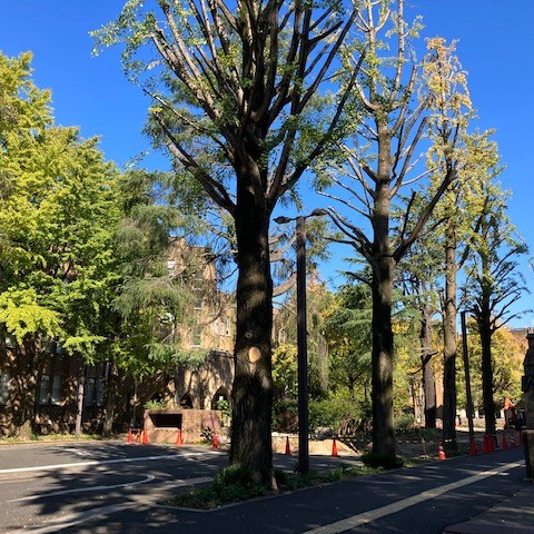 11月8日の定例販売日。5月に再開しなんとか中断もなくここまで来ました。この日は目に染みるような晴天で夜の皆既月食が楽しみで心軽やか、資料館に訪れる人も多いような気がしました。キャンパス内の路上に落ちている銀杏の実を拾う人なく、イチョウの葉はまだ青々していました。以下はキャンパス風景と来訪してくれたワンちゃんギャラリー。飼い主さんに抱かれた通院帰りのマルくん7歳。顔出しパネルにおすまし顔のチワワいちごちゃん2歳。コロナ前から4年ぶりの来訪、柴犬サンタくん。